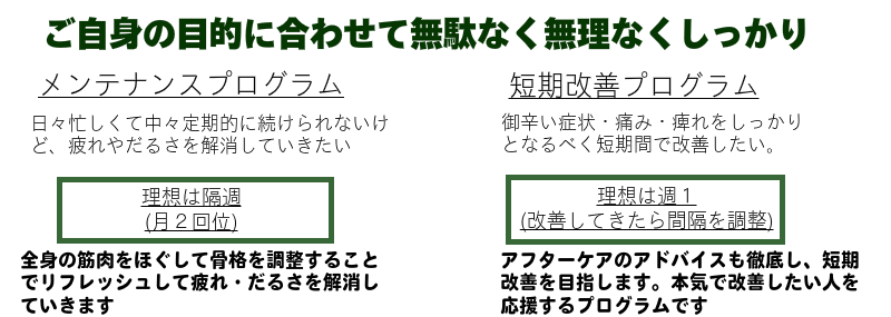 まずはお辛い症状を緩和させるために短期間で施術をおすすめします。